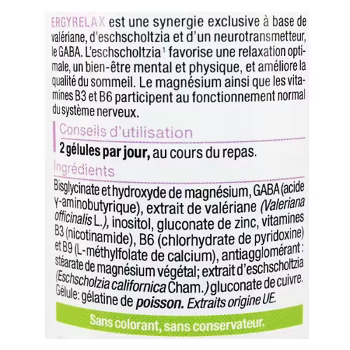 Капсулы Nutergia Ergyrelax легко проглатываются и подходят для ежедневного использования. Продукт рекомендуется для людей, испытывающих стресс, а также для тех, кто хочет улучшить качество своего сна и общее состояние здоровья.