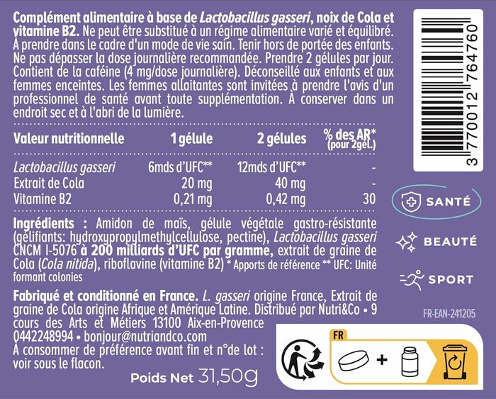 Капсулы Nutri&Co Lactobacillus Gasseri и Орех Колы легко проглатываются и подходят для ежедневного использования. Они идеально подходят для людей, стремящихся поддерживать здоровье кишечника и уровень энергии в течение дня.