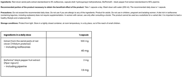 Капсулы легко проглатываются и подходят для ежедневного использования. БАД Pharmovit Красный клевер рекомендуется для женщин, стремящихся поддерживать свое здоровье в разные периоды жизни.