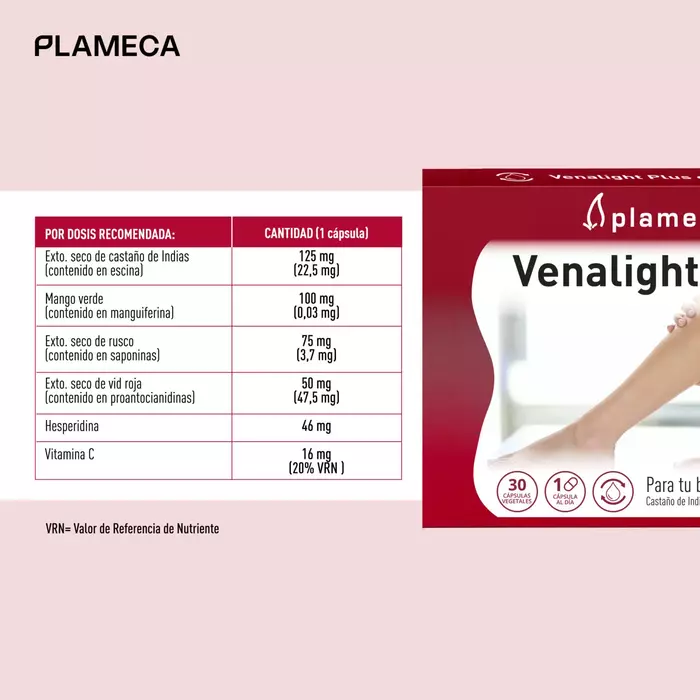 БАД Plameca Venalight Plus — это эффективное средство для поддержания здоровья вен и улучшения кровообращения. В каждой упаковке содержится 30 капсул, которые помогут вам заботиться о состоянии ваших ног и общем самочувствии.