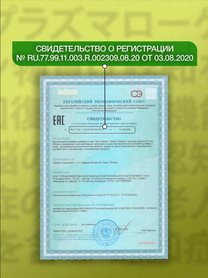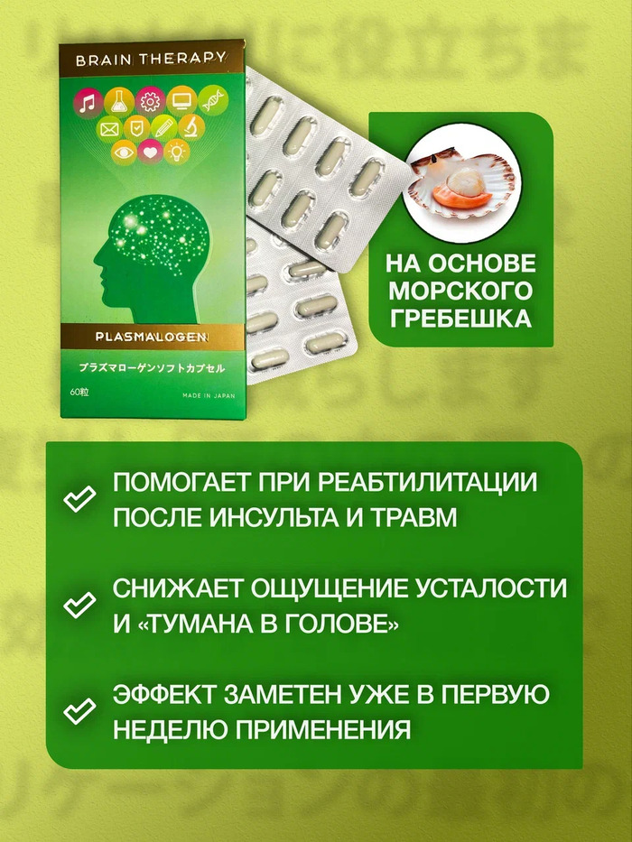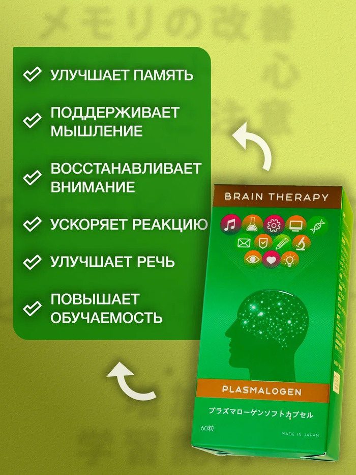 БАД Плазмалоген Brain Therapy — это эффективное средство для восстановления когнитивных функций. В каждой упаковке содержится 60 капсул, которые помогут улучшить память, внимание и общее состояние мозга.