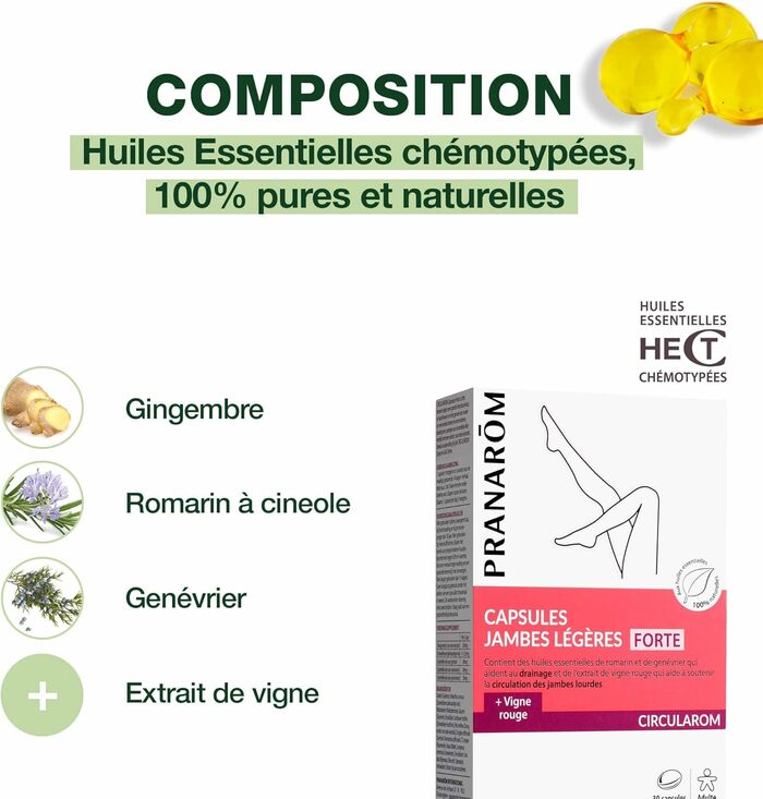 Капсулы Pranarom Circularom Fort "Легкие ноги" разработаны с учетом потребностей людей, испытывающих дискомфорт в ногах. Они подходят для ежедневного использования и могут быть полезны при длительных поездках или стоячей работе.