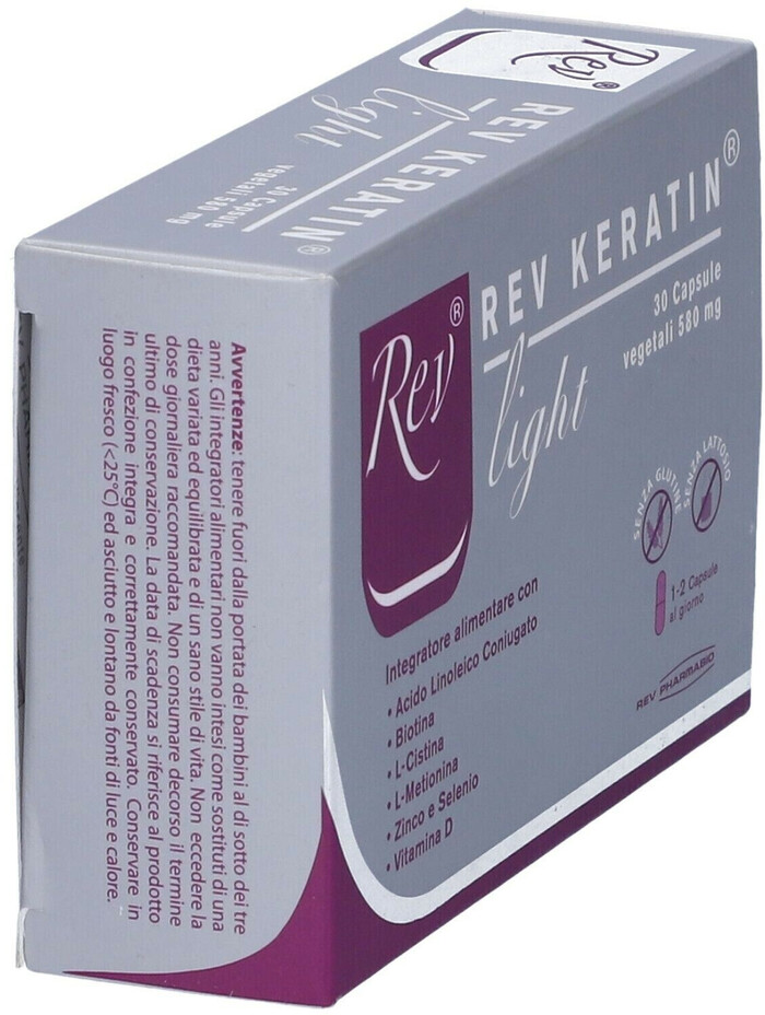 БАД Rev Keratin Light для волос, кожи и ногтей — это высококачественный комплекс, разработанный для поддержания здоровья и красоты ваших волос, кожи и ногтей. В каждой упаковке содержится 30 капсул, которые обеспечивают организм необходимыми питательными веществами.