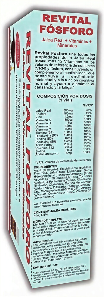 БАД Revital Jalea+Fosforo с маточным молочком и фосфором — это уникальный продукт, который сочетает в себе полезные свойства маточного молочка и фосфора. В каждой упаковке содержится 20 ампул, что делает его удобным для ежедневного использования.