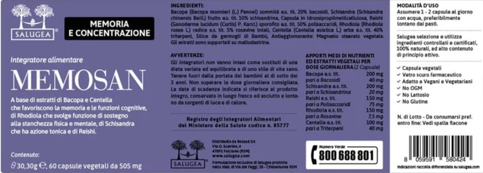 Капсулы Salugea Memosan легко проглатываются и подходят для ежедневного использования. Рекомендуется принимать в периоды повышенных умственных нагрузок, а также для поддержания ясности ума в повседневной жизни.