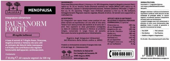 БАД Salugea Pausenorm Forte для женщин — это уникальный комплекс, разработанный для поддержки женского здоровья в период менопаузы. В каждой упаковке содержится 60 капсул, которые помогают справиться с симптомами, связанными с гормональными изменениями.