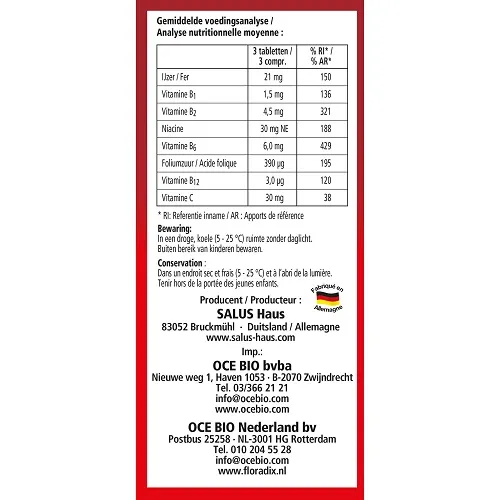 Salus Floradix Iron Tablets - Железо — это высококачественная добавка, предназначенная для поддержания нормального уровня железа в организме. В каждой упаковке содержится 20 таблеток, которые обеспечивают необходимую поддержку для людей, испытывающих дефицит железа.