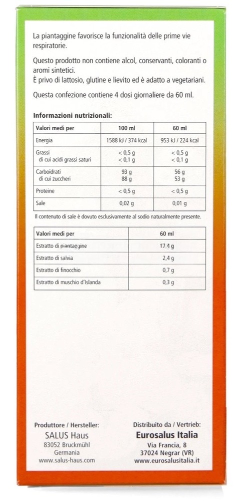 Salus Plantain подходит для использования в период простуд и гриппа, а также для людей, работающих в условиях загрязненной атмосферы. Продукт имеет приятный вкус и легко усваивается организмом.