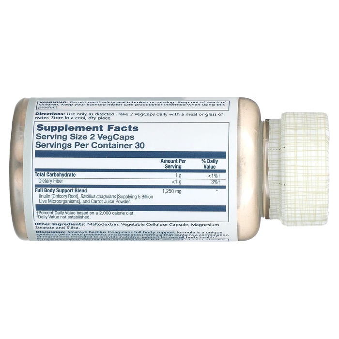 Solaray БАД Solaray Bacillus Coagulans и Инулин 2.5 миллиарда КОЕ, 60 растительных капсул