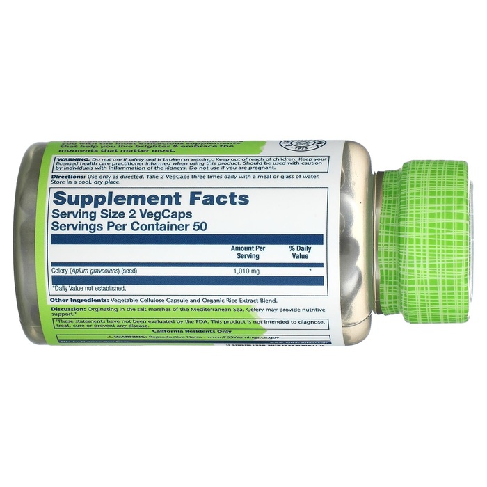 Капсулы легко проглатываются и подходят для вегетарианцев, что делает их доступными для широкой аудитории. БАД Solaray Celery Seed идеально подходит для тех, кто ищет натуральные способы поддержания здоровья.