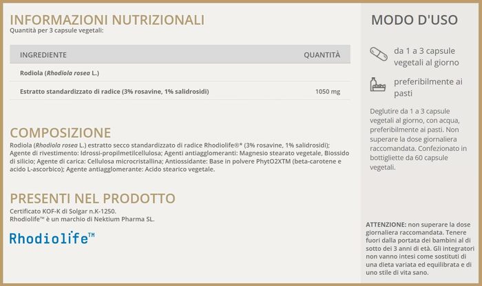 БАД Solgar Fitorodiola — это высококачественная добавка, содержащая экстракт родиолы розовой, известной своими адаптогенными свойствами. В каждой упаковке содержится 60 капсул, которые помогут поддержать физическую и умственную активность.