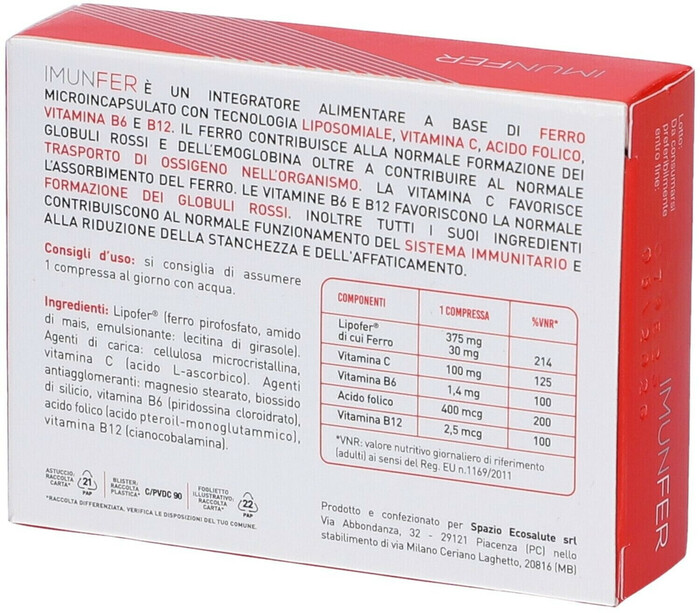 Таблетки Spazio Ecosalute IMUNFER имеют удобную форму и легко проглатываются. Они подходят для людей с повышенной потребностью в железе, включая спортсменов и женщин в период менструации.