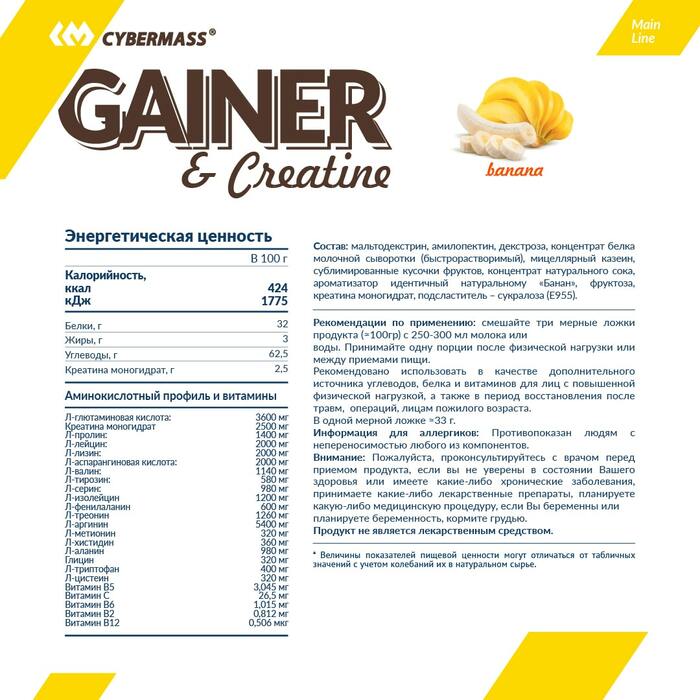 CyberMass Гейнер&Креатин Банан, 1500 г
