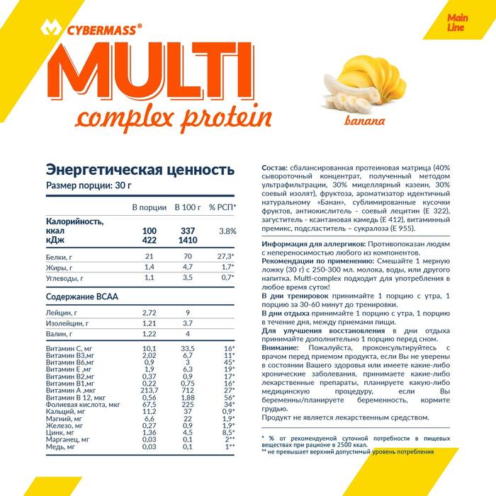 CyberMass Многокомпонентный протеин Multi Complex Банан, 1200 г