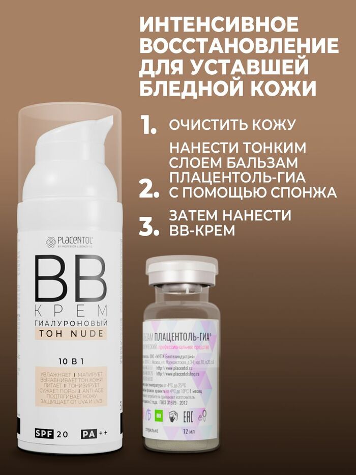Плацентоль BB крем гиалуроновый Nude, 50 мл