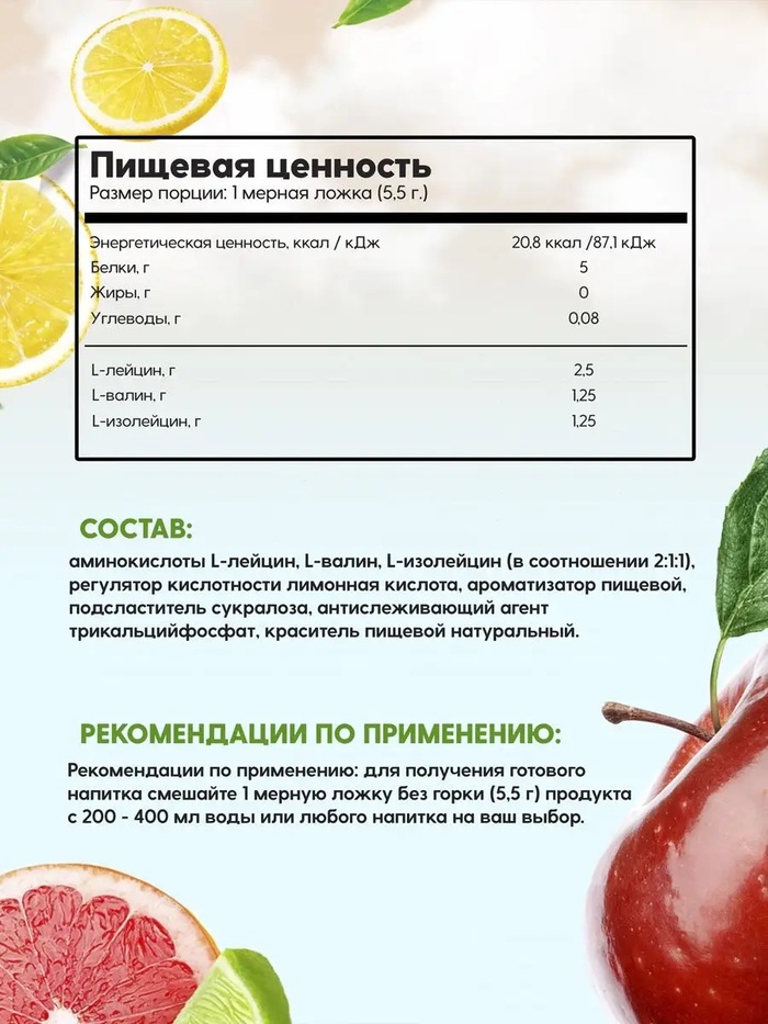- Ускоренное восстановление: BCAA помогают уменьшить мышечную усталость и боль после тренировок, способствуя быстрому восстановлению мышц.