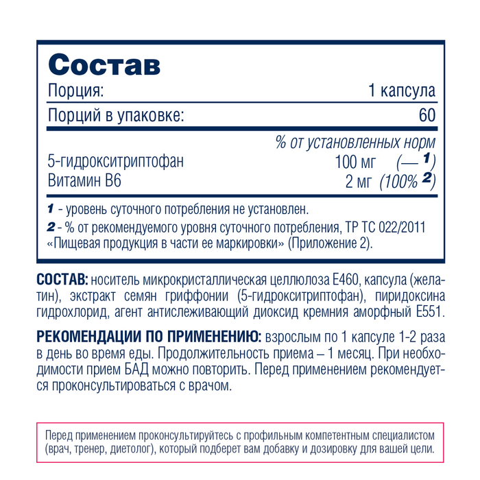 Типичный антистрессовый протокол приема 5-HTP 100 мг 2-3 раза в день.