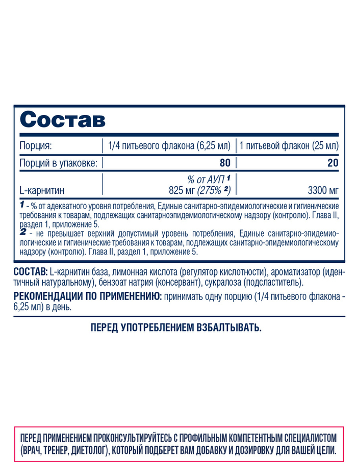 Принимать 1 порцию (25 мл) в чистом виде или развести в 100–200 мл воды. Употреблять за 30–40 минут до тренировки для усиления жиросжигания и повышения выносливости. Можно принимать утром натощак или между приемами пищи.