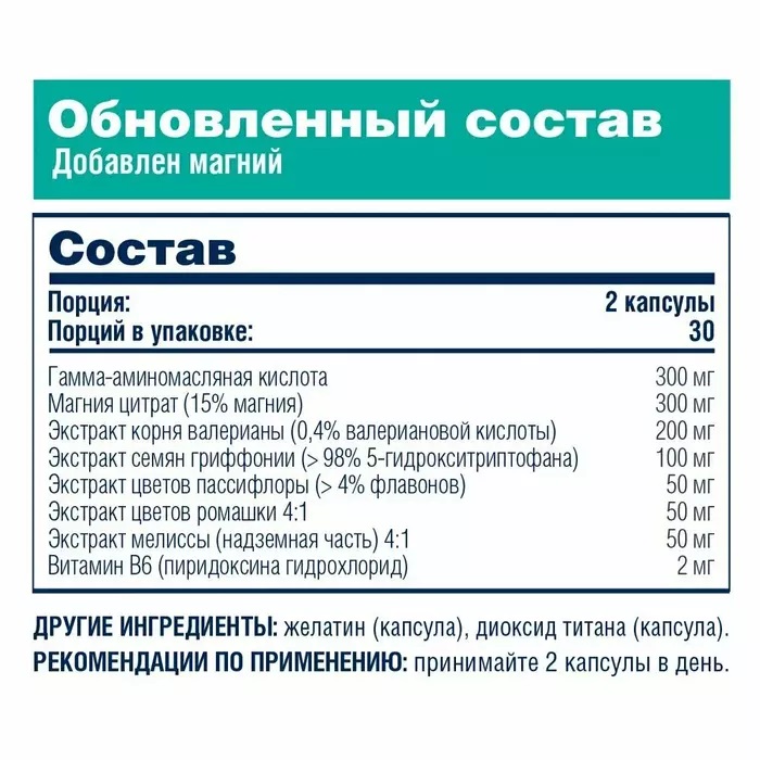 Принимают курсами по 2 капсулы за час-два до отхода ко сну. Имеет накопительный эффект.