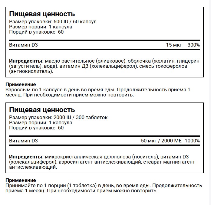 Swanson Витамин Д3 Высокоэффективный (1000 МЕ/25 мкг), 60 капсул