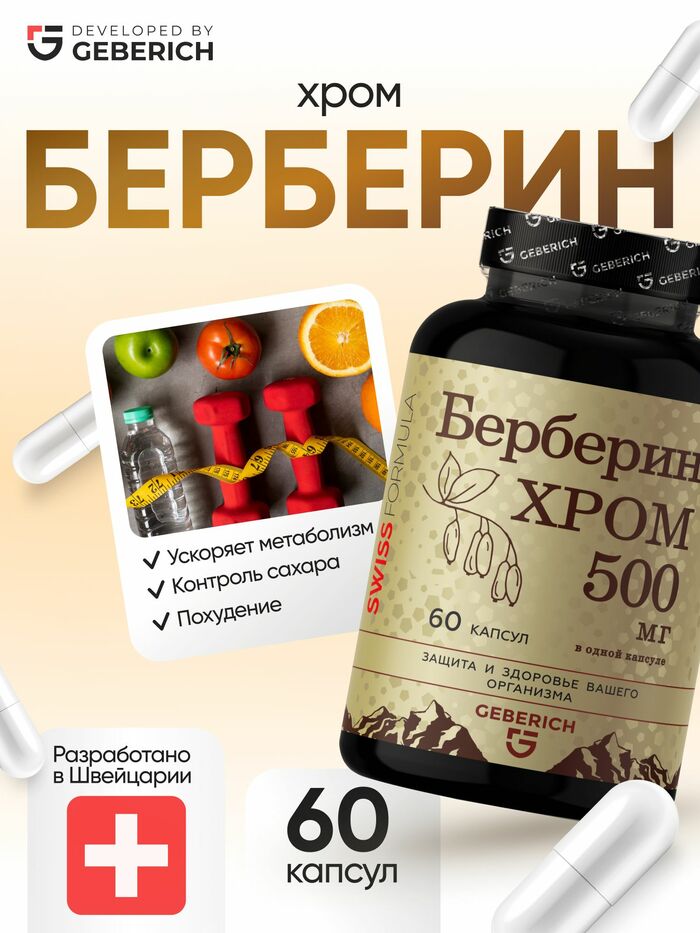 Geberich Берберин 500 мг с хромом Geberich для похудения и обмена веществ, 60 капсул
