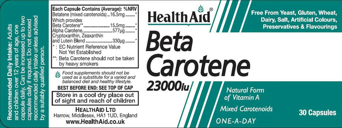 Health Aid Бета-Каротин (10000 МЕ), 30 капсул