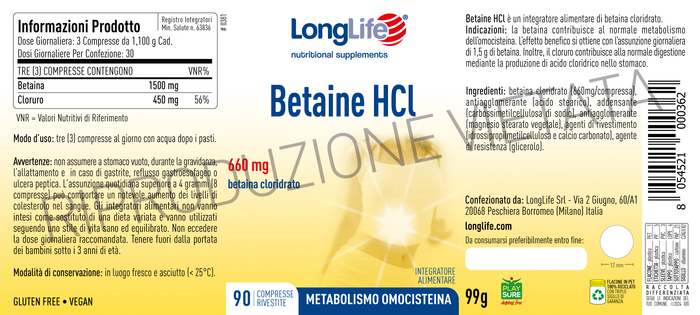 Бетаин Гидрохлорид 660мг от LongLife — это высококачественная добавка, предназначенная для поддержки пищеварительной системы. В каждой упаковке содержится 90 таблеток, которые помогут улучшить усвоение питательных веществ.