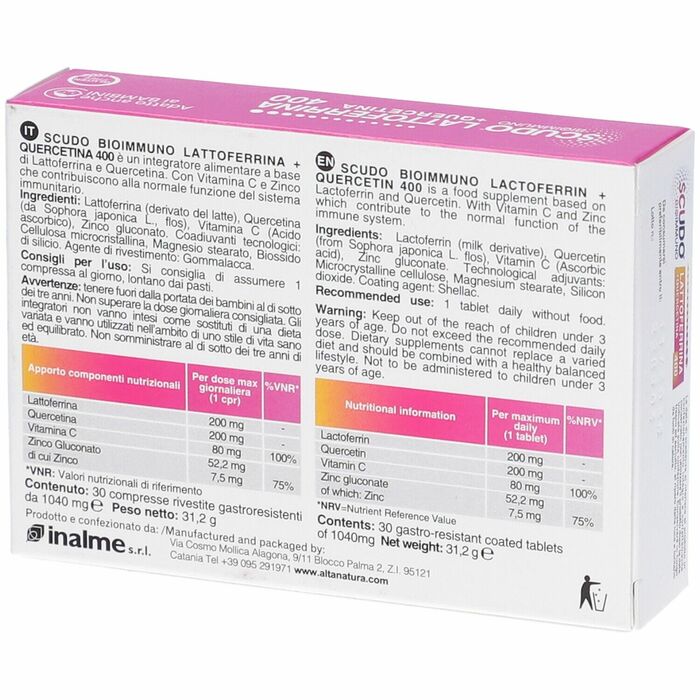 Биологически активная добавка Alta Natura Scudo Lactoferrin 400 + Quercetin — это эффективное средство для поддержки иммунной системы и общего состояния здоровья. В каждой упаковке содержится 30 таблеток, которые обеспечивают организм необходимыми компонентами для защиты и восстановления.