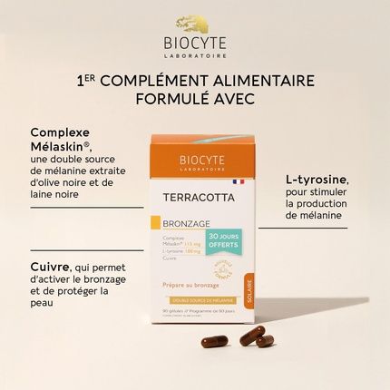Биологически активная добавка Biocyte Terracotta предназначена для подготовки кожи к загару. Этот продукт помогает улучшить цвет кожи и защитить её от негативного воздействия солнечных лучей.
