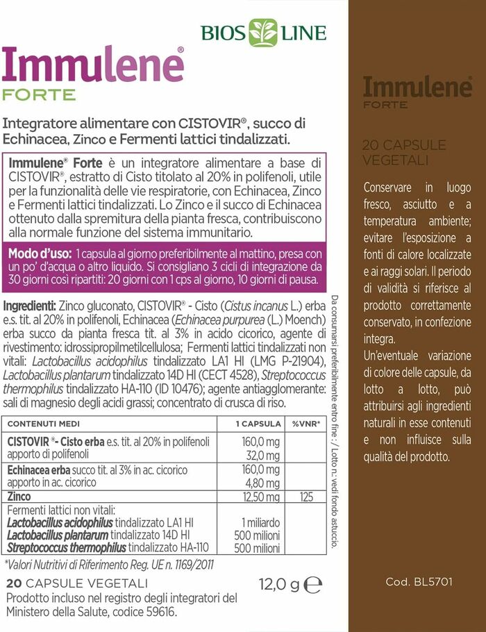 Bios Line Биологически активная добавка Bios Line Immulene Forte 20 капсул