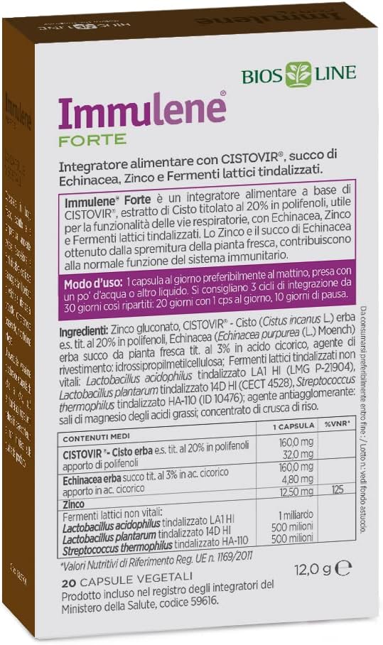 Биологически активная добавка Bios Line Immulene Forte — это эффективное средство для поддержки иммунной системы. В каждой упаковке содержится 20 капсул, которые помогут вашему организму справляться с сезонными заболеваниями и укрепить защитные функции.
