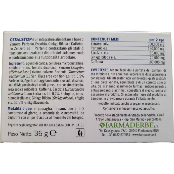Farmaderbe Биологически активная добавка Farmaderbe Cefalstop для снятия локализованного напряжения, 30 таблеток