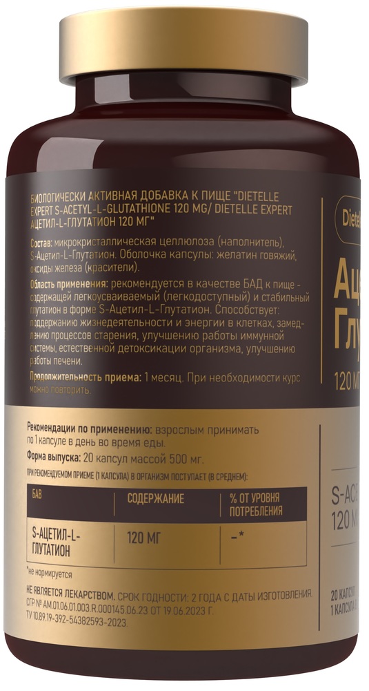 Dietelle Аминокислота Expert Ацетил-L-Глутатион (120 мг), 20 капсул