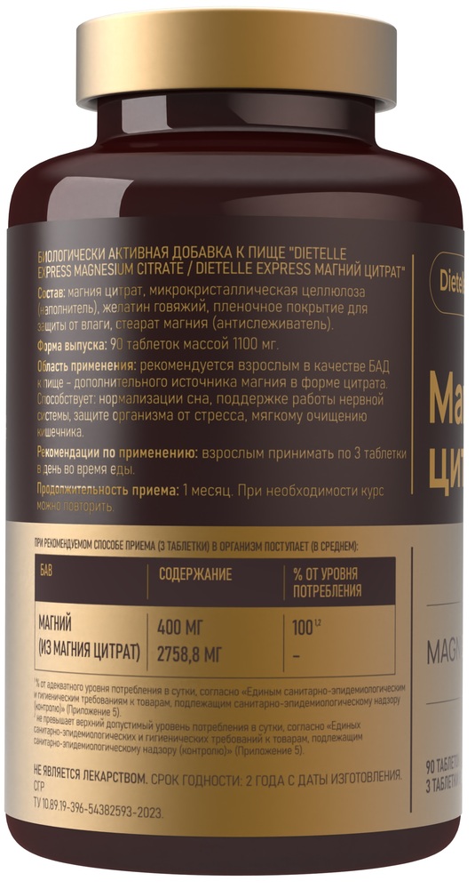 Dietelle Магний Цитрат (400 мг), 90 табл