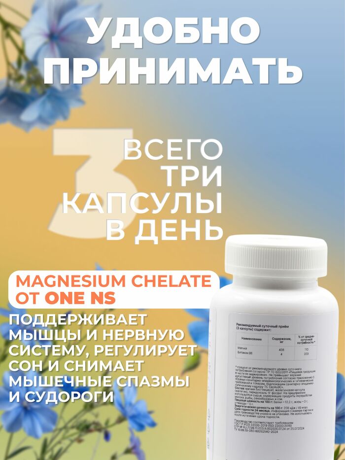 One NS Магний хелат B6 (438 мг), 90 капсул