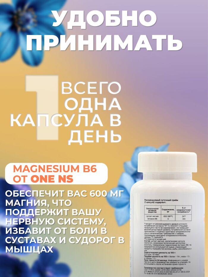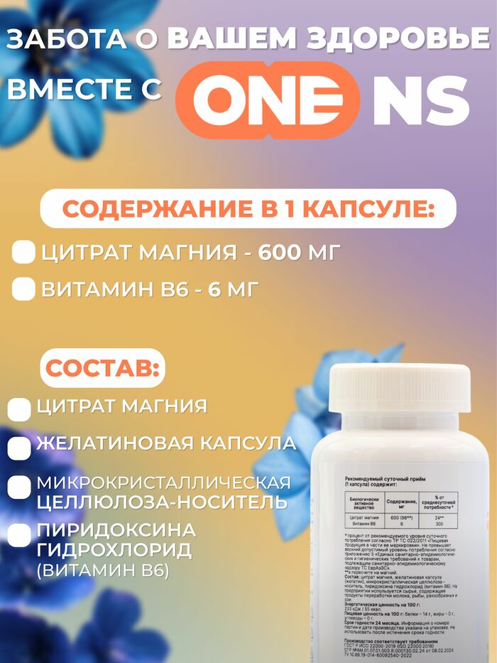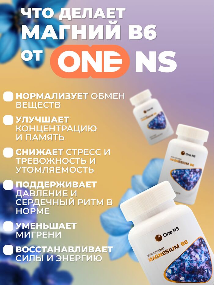 Биологически активная добавка к пище "Магний В 6 капс" от бренда One NS — это эффективное средство для поддержания нормального уровня магния в организме. В каждой упаковке содержится 90 капсул, которые помогут вам справиться с дефицитом этого важного минерала.