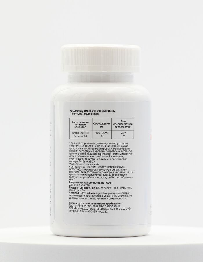 Капсулы легко проглатываются и подходят для ежедневного использования. Рекомендуется принимать добавку в периоды повышенных физических и умственных нагрузок, а также при недостаточном поступлении магния с пищей.