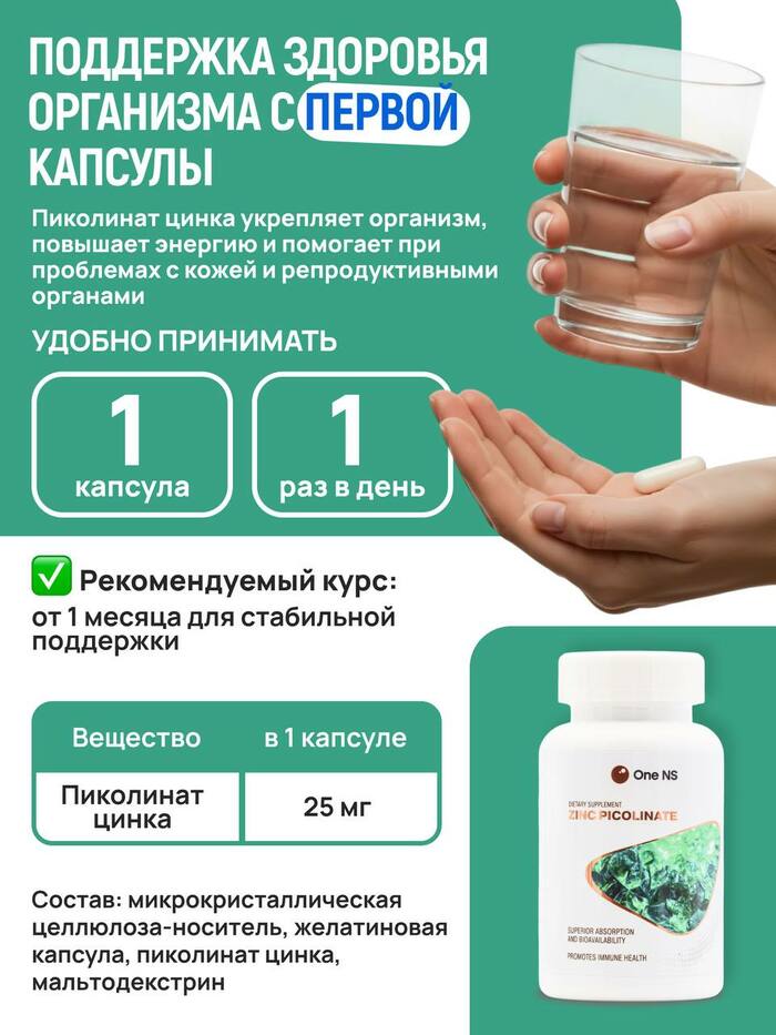 One NS Цинк пиколинат (25 мг), 60 капсул