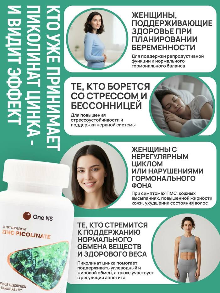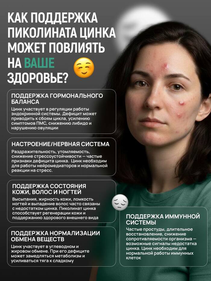 • Улучшение обмена веществ: Пиколинат цинка способствует нормализации обмена веществ и улучшению усвоения питательных веществ.