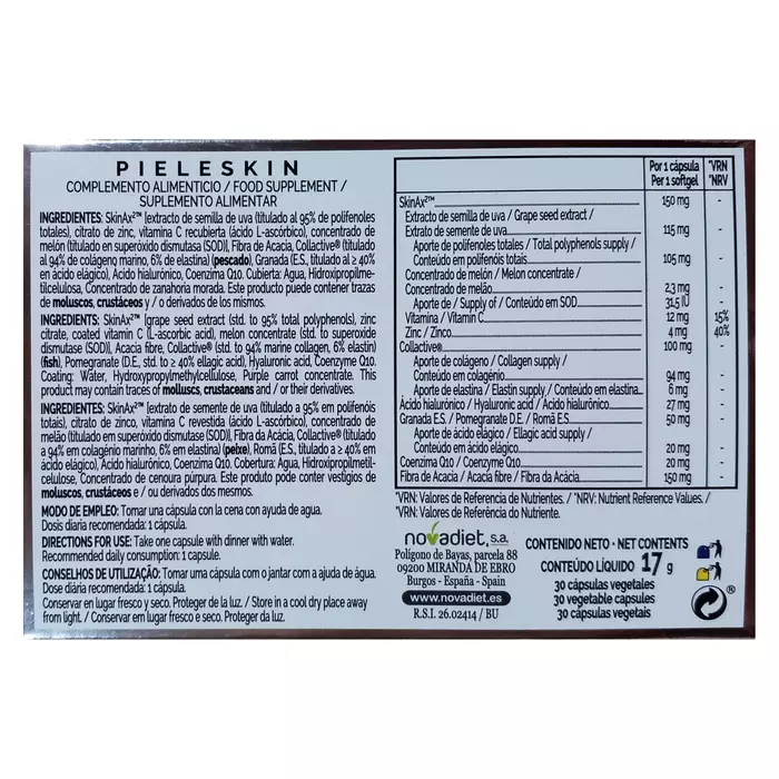 Биологически активная добавка Novadiet Pileskin — это эффективное средство для поддержания здоровья кожи. В каждой упаковке содержится 30 капсул, которые обеспечивают организм необходимыми компонентами для улучшения состояния кожи.