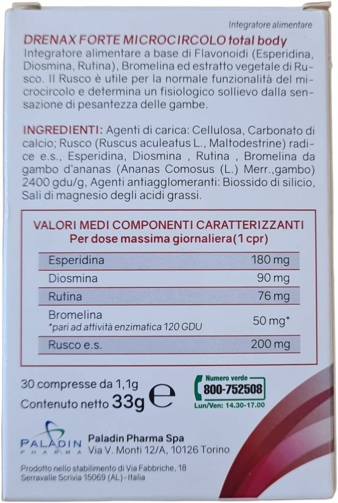 Paladin Pharma Биологически активная добавка Paladin Pharma Drenax Strong Microcirculation Total Body Supplement, 30 таблеток