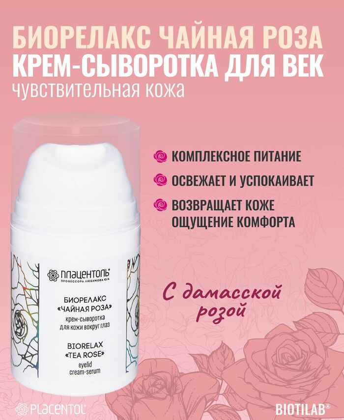Плацентоль Крем-сыворотка вокруг глаз Биорелакс Чайная роза для чувствительной кожи, 50 мл