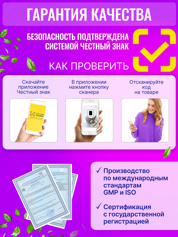 Капсулы легко проглатываются и не содержат искусственных добавок, что делает их безопасными для регулярного использования. Рекомендуется принимать в рамках сбалансированного питания для достижения наилучших результатов.