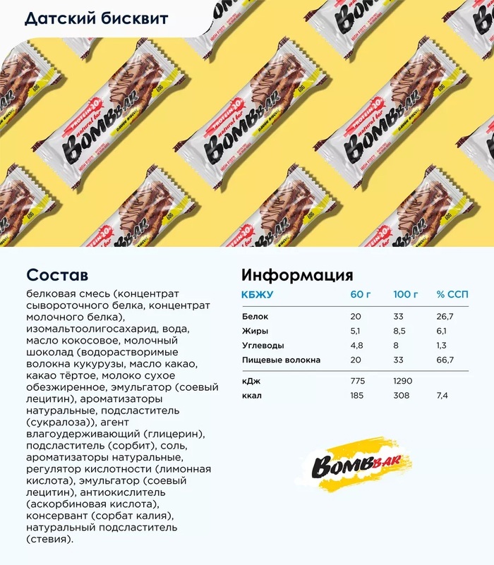 Протеиновый батончик Датский бисквит от бренда Bombbar — это отличный выбор для тех, кто следит за своим питанием и активным образом жизни. В каждой упаковке содержится 20 батончиков, которые идеально подойдут для перекуса в любое время дня.