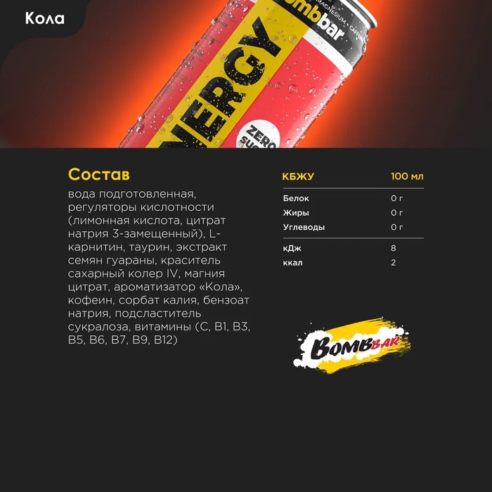 Bombbar Аминокислота Energy L-Карнитин с гуараной Кола, 450 мл х 12 шт срок до 2026-01-20