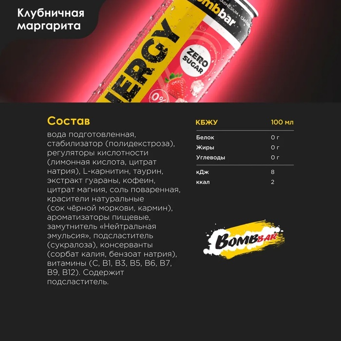 Bombbar Аминокислота Energy L-Карнитин с гуараной Маргарита, 450 мл х 12 шт срок до 2026-03-15
