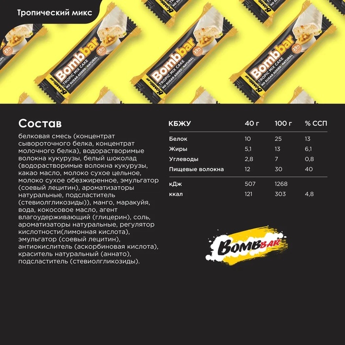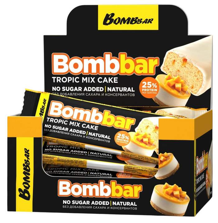Bombbar Протеиновый батончик Манго-Маракуйя, 40 г, 30 шт в упаковке
