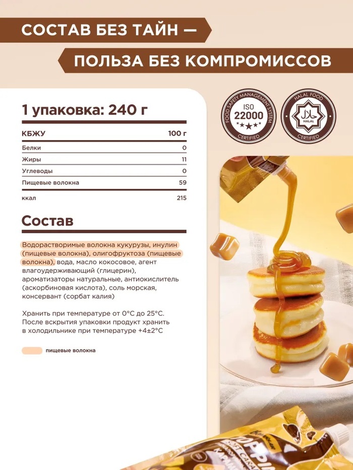 • Натуральный вкус: Топпинг обладает насыщенным карамельным вкусом, который прекрасно дополняет мороженое, блины и десерты.