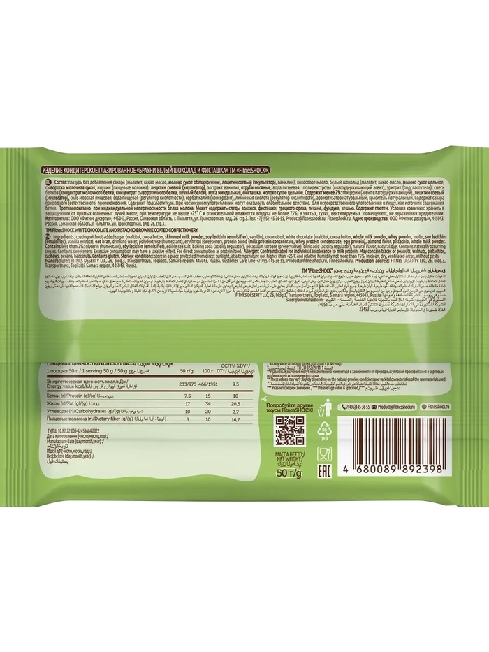 Продукт разработан для активных людей, следящих за своим питанием. Брауни с белым шоколадом и фисташкой — это отличная альтернатива традиционным сладким угощениям. Он удобен для перекусов дома, на работе или в тренажерном зале. Это идеальный выбор для тех, кто ищет вкусные, но при этом полезные сладости, которые помогают поддерживать баланс между удовольствием и заботой о своем здоровье.
