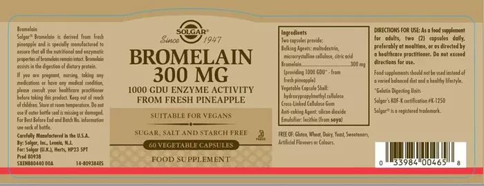 Solgar Бромелайн (300 мг), 60 табл
